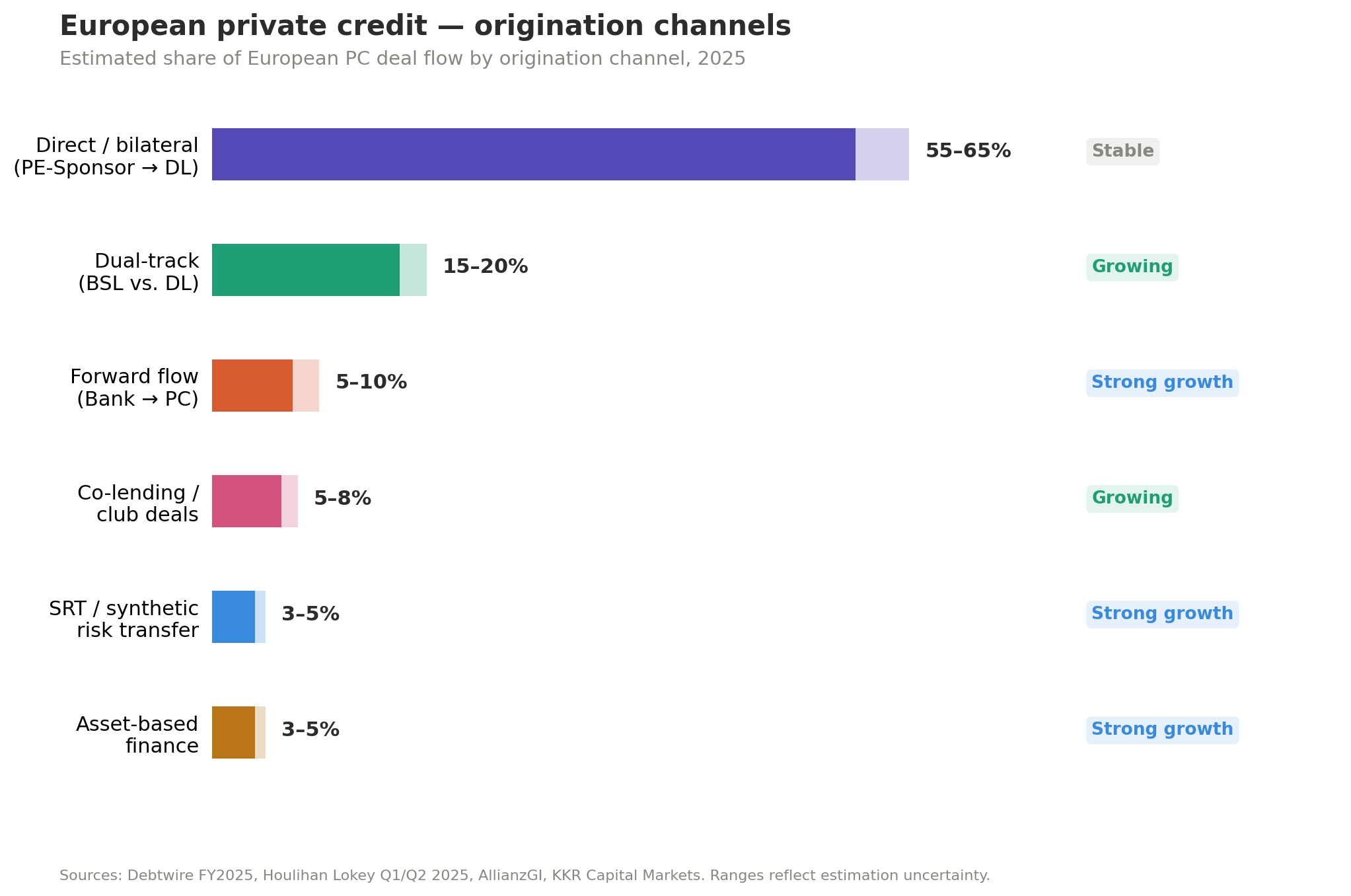 Yes, direct lending via PE sponsors still dominates (55–65% of deal flow). That is not changing anytime soon.