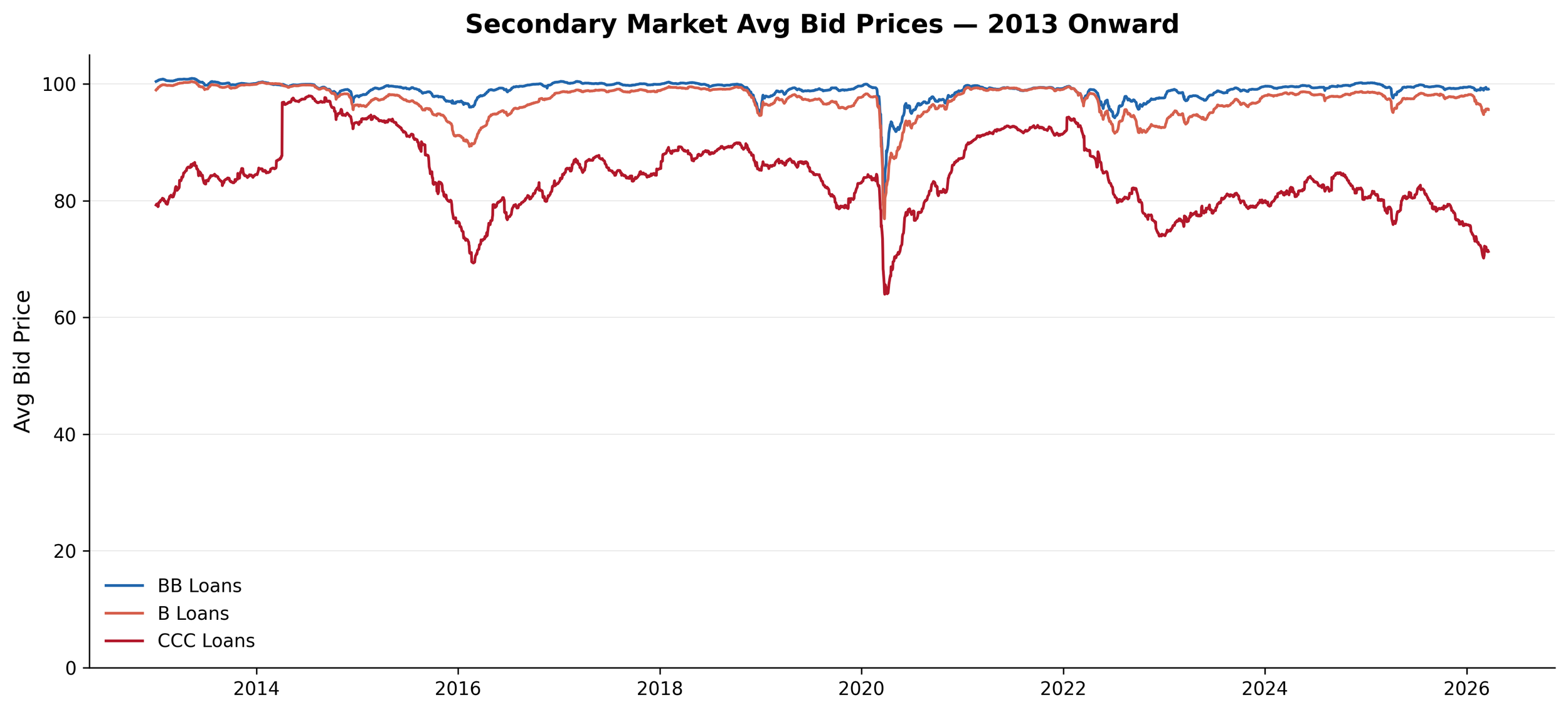Bid price differential of CCC - BB leveraged loans